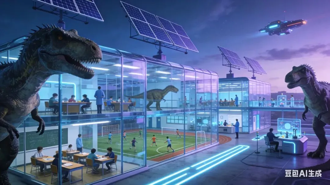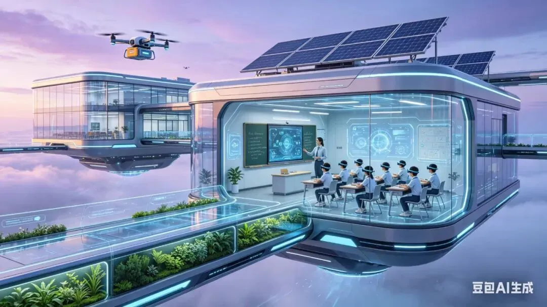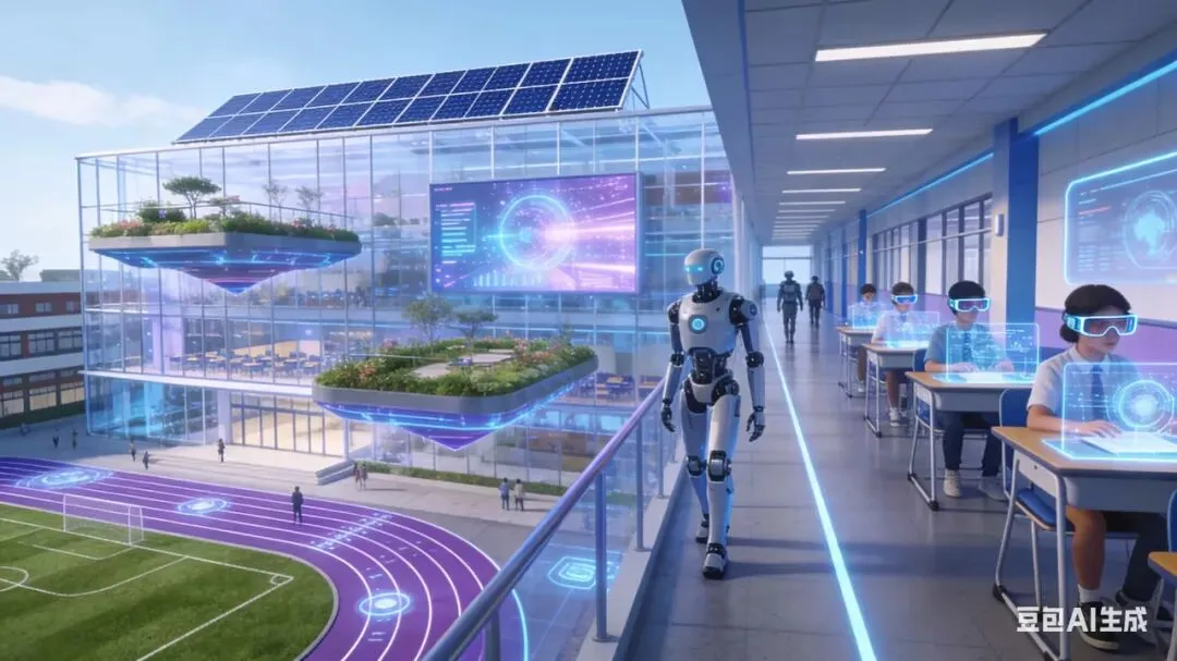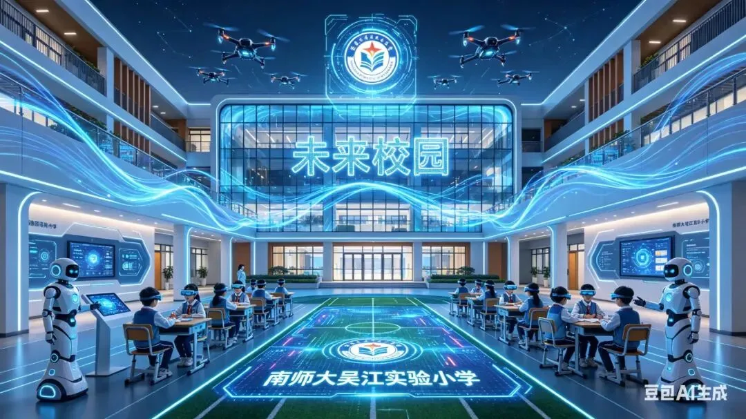 二年级同学借助AI绘图软件,创意打造“未来的校园”。智能教室、科技长廊、AI服务站、自动图书馆等场景被一一呈现,画面充满想象力,科技感与创意感十足,让大家在数字创作中,直观感受AI如何让校园生活更便捷、更有趣。