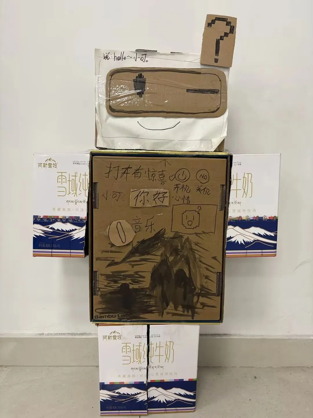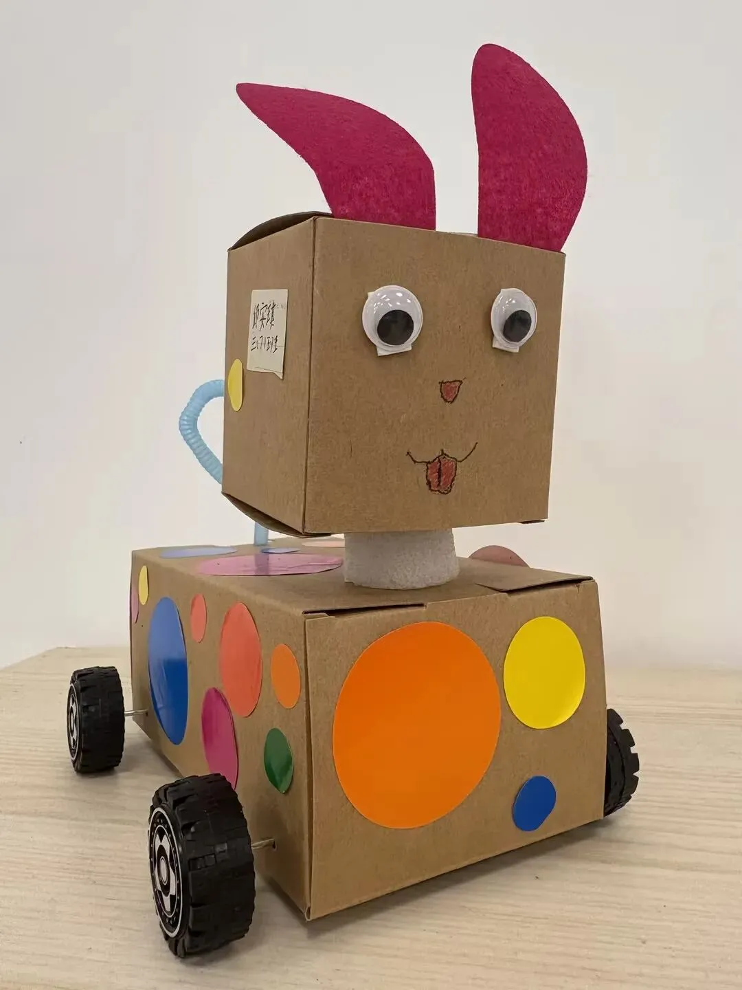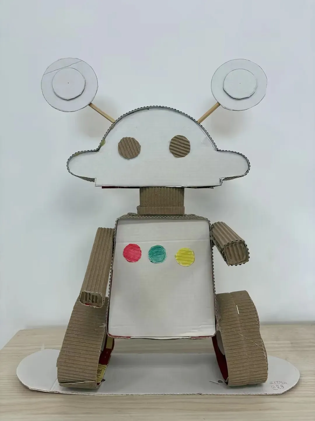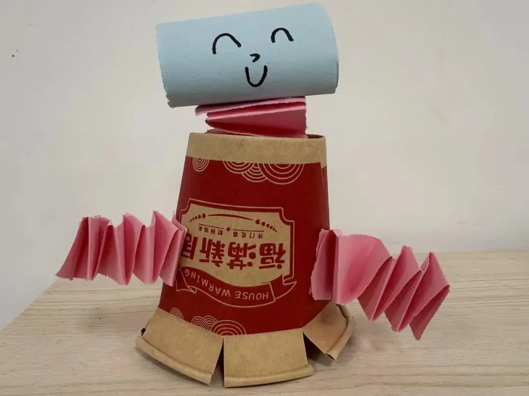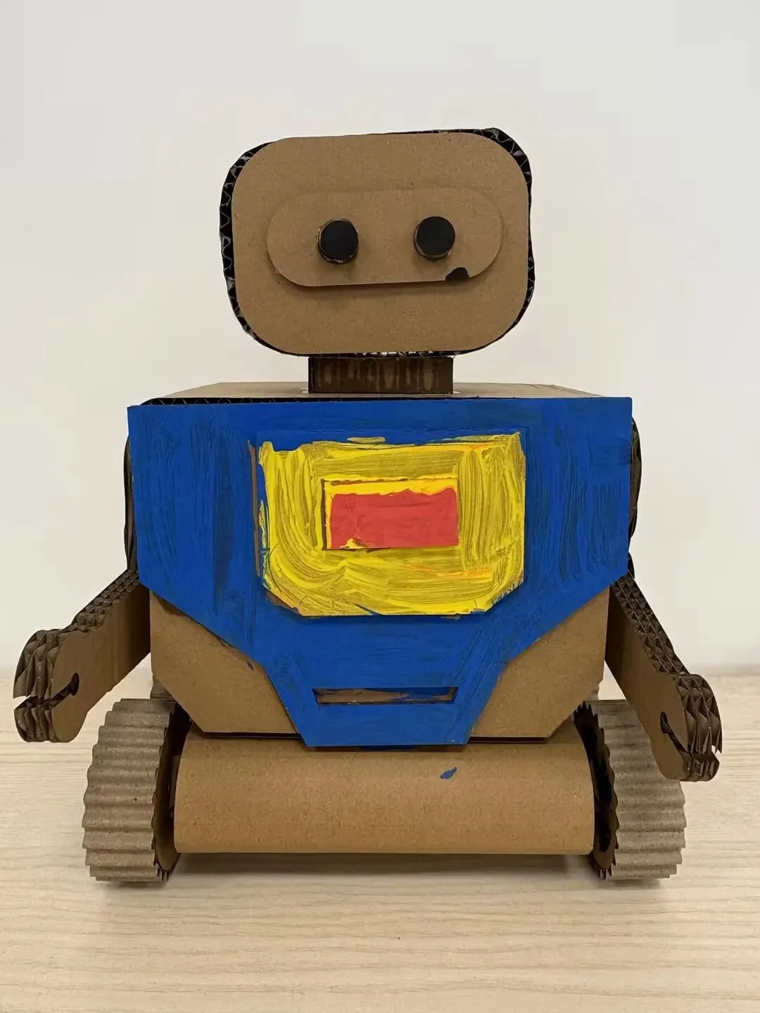 三年级开展“AI数字人”手工制作,孩子们利用纸盒、瓶盖、吸管等废旧物品,变身小小创客。大家动手裁剪、拼接、装饰,把普通材料变身为形态各异、趣味十足的AI数字人模型,让创意从想法落地为实物,在动手实践中感受科技与手工的乐趣。
