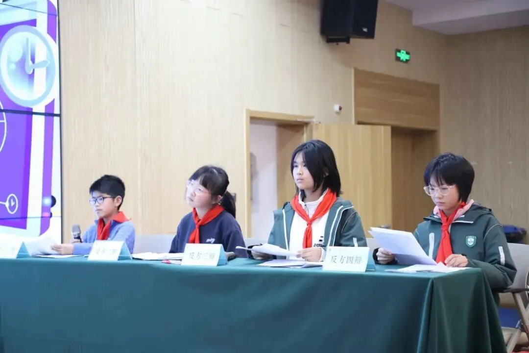 五六年级围绕“有了AI,人类更有创造力VS有了AI,人类越来越不会创造”主题展开精彩辩论。正反双方唇枪舌剑、据理力争,从不同角度阐述观点,在思维碰撞中全面认识 AI的优势与挑战,学会理性思考科技发展,提升逻辑表达与思辨能力。