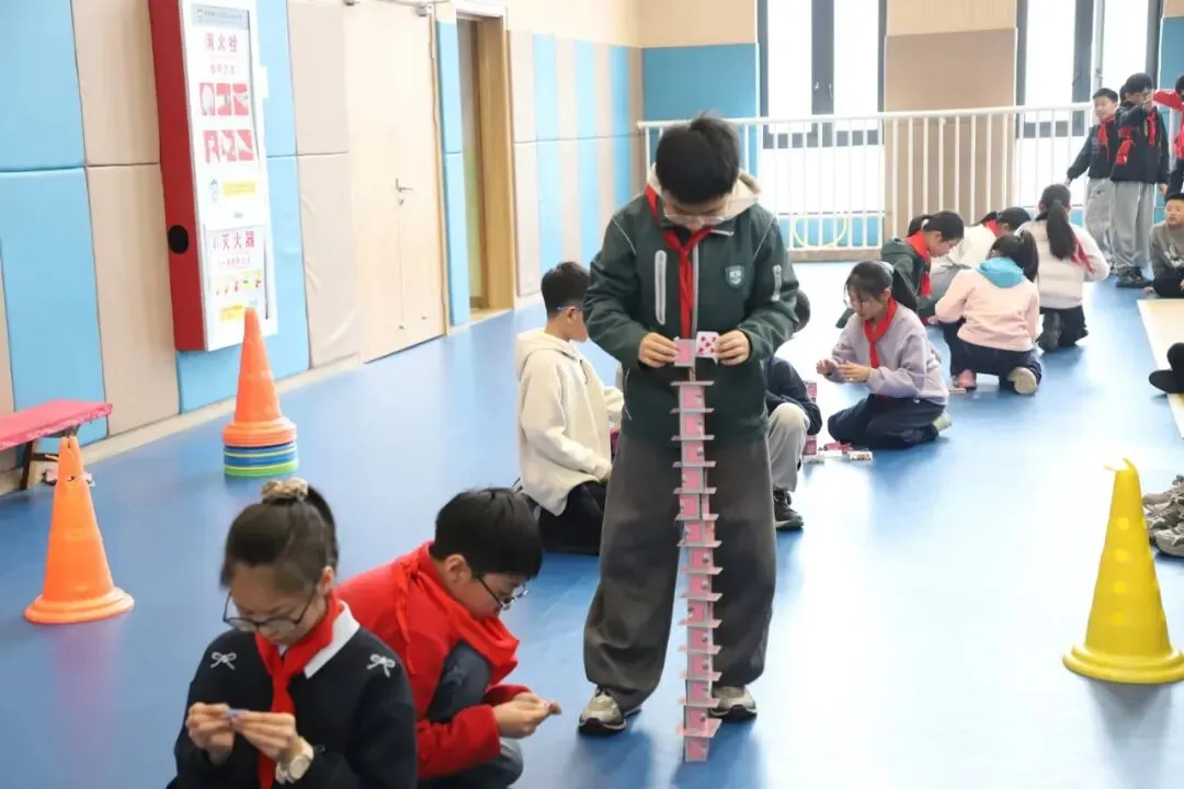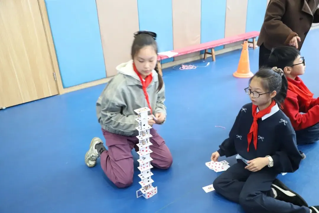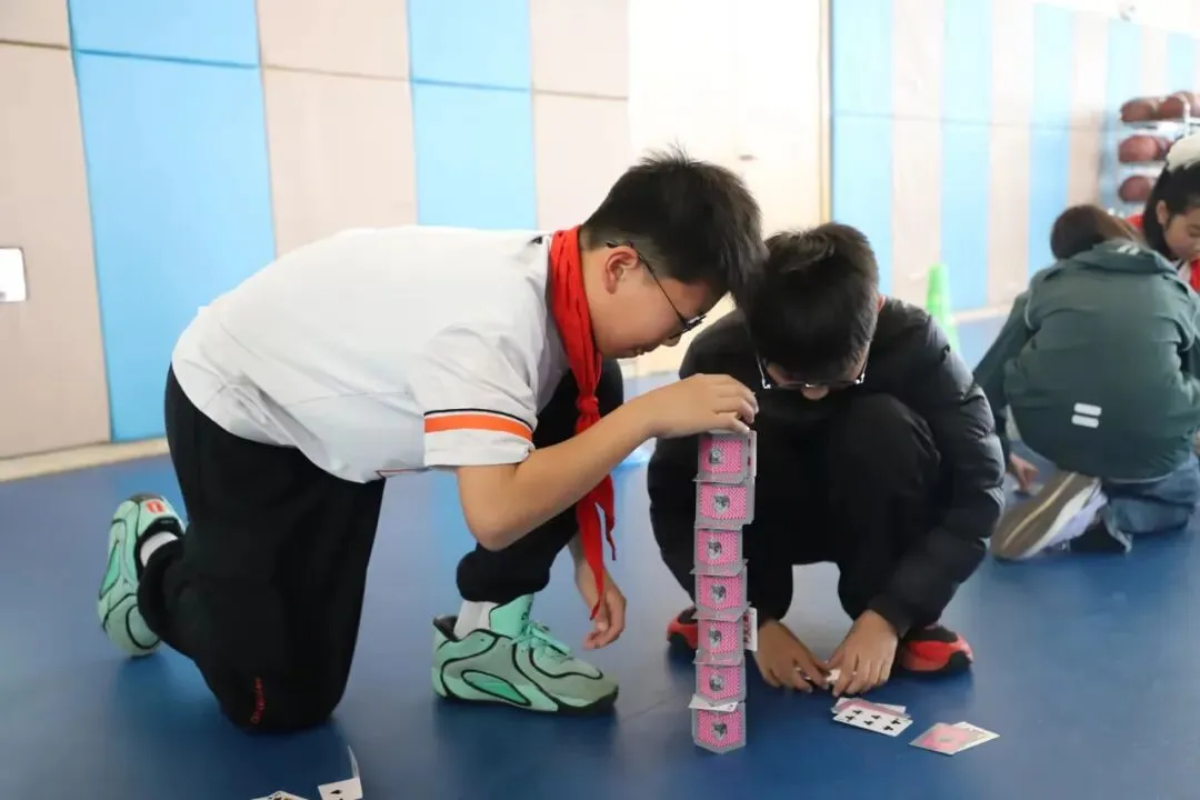 一副扑克牌能搭出怎样的 “凌云高塔”?五六年级学生化身 “小小建筑师”,在规则下用扑克牌搭建摩天高塔。限时比拼中,大家争分夺秒,在高度与速度间探索结构稳定。创意高塔稳稳伫立,孩子们收获成就感,在实践中解锁结构力学奥秘,在挑战中成长进步。
