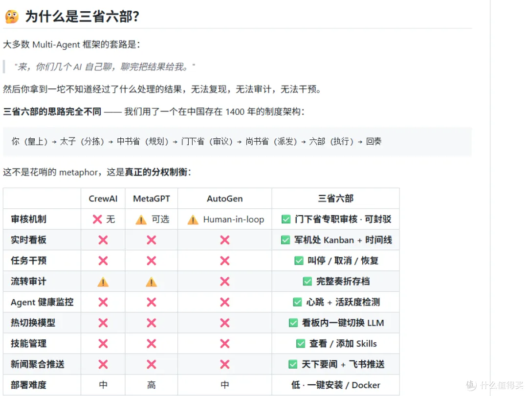 最近,AI圈里出现了一个堪称脱裤子放屁的奇葩架构思路,甚至已经被一些人做成了引以为傲的系统:让AI去玩三省六部制的朝堂Cosplay。