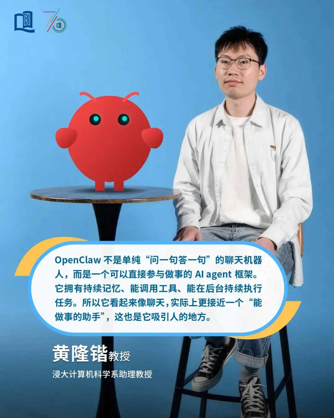 本期《浸透热点》,我们专访香港浸会大学(浸大)计算机科学系助理教授黄隆锴教授,从 OpenClaw 的走红原因、适用场景与安全风险谈起,拆解这场“养龙虾”热背后,更值得被看见的技术真相。