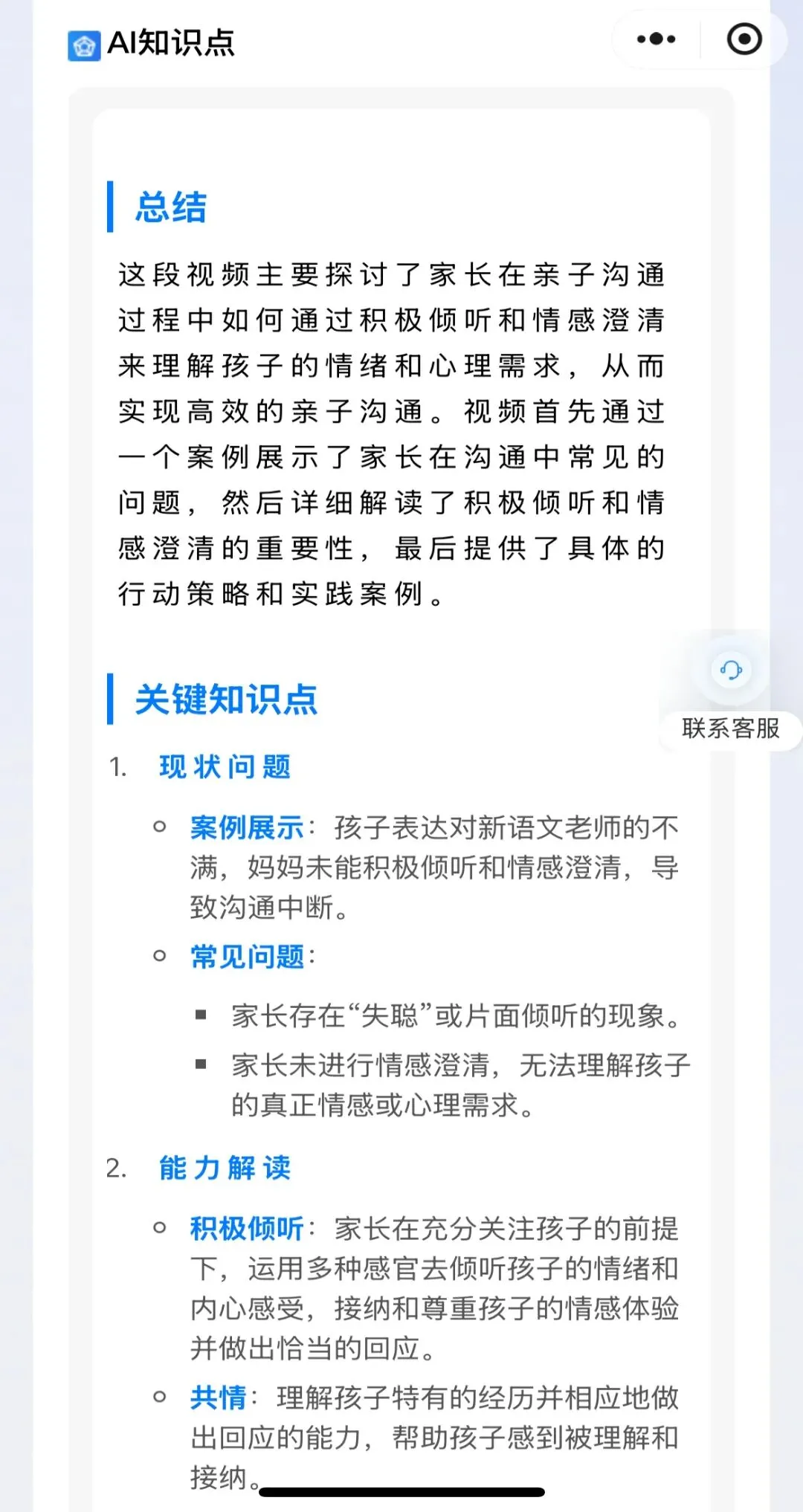 AI系统凭借自然语言处理、行为数据分析等技术,快速洞察孩子思维与心理动态,为家长提供贴心服务。全程如通关般形成完整学习闭环,助力家长将认知能力转化为实战力,轻松实现智慧育儿!