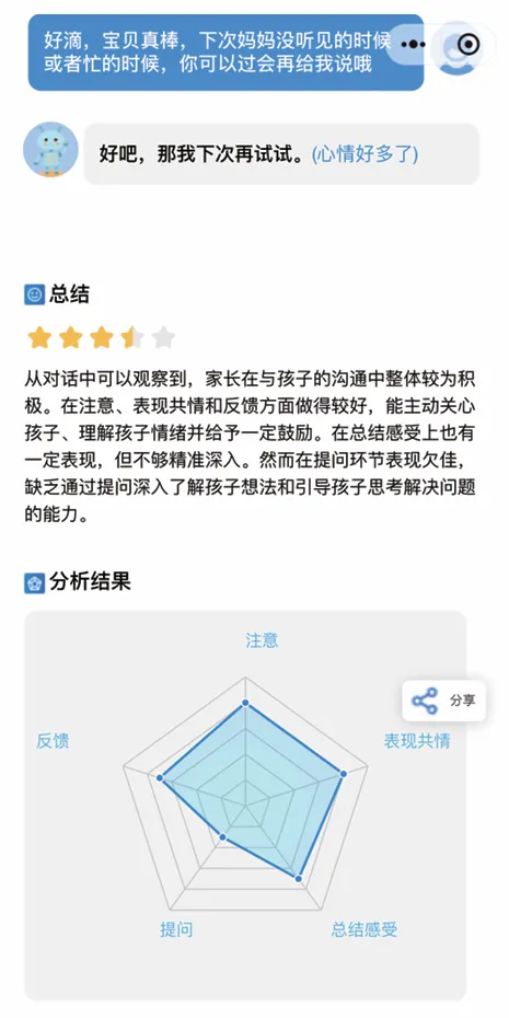智能陪练恰似“练习副本”,附清晰思考指引与“AI 娃”内心动态,即时反馈助力打磨育儿技能。
