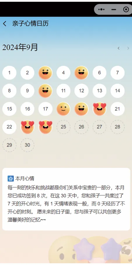 •通过每日签到,可以记录与孩子间的每日心情起伏。