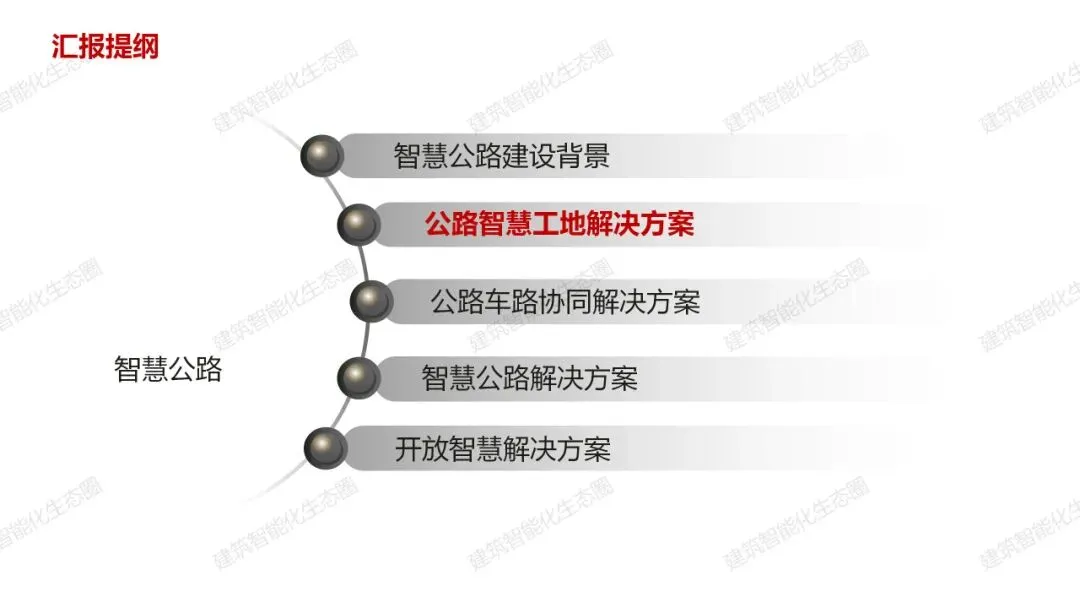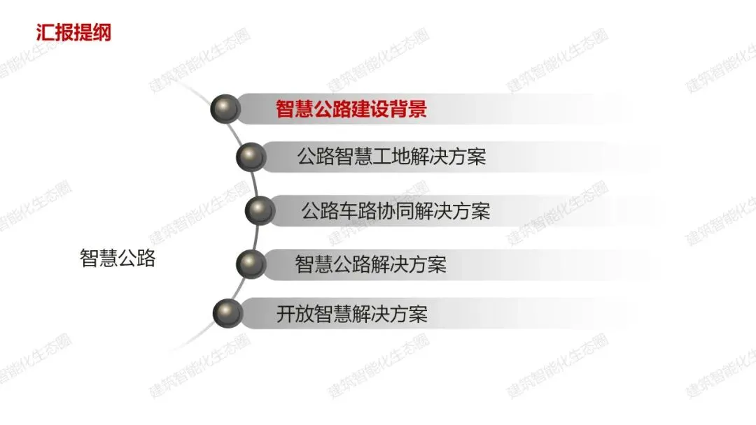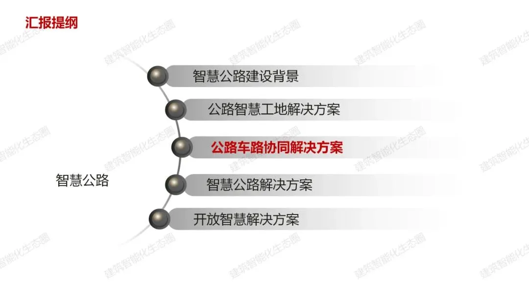 智慧公路建设背景 公路智慧工地解决方案 公路车路协同解决方案 公路车路协同解决方案 开放智慧解决方案 |