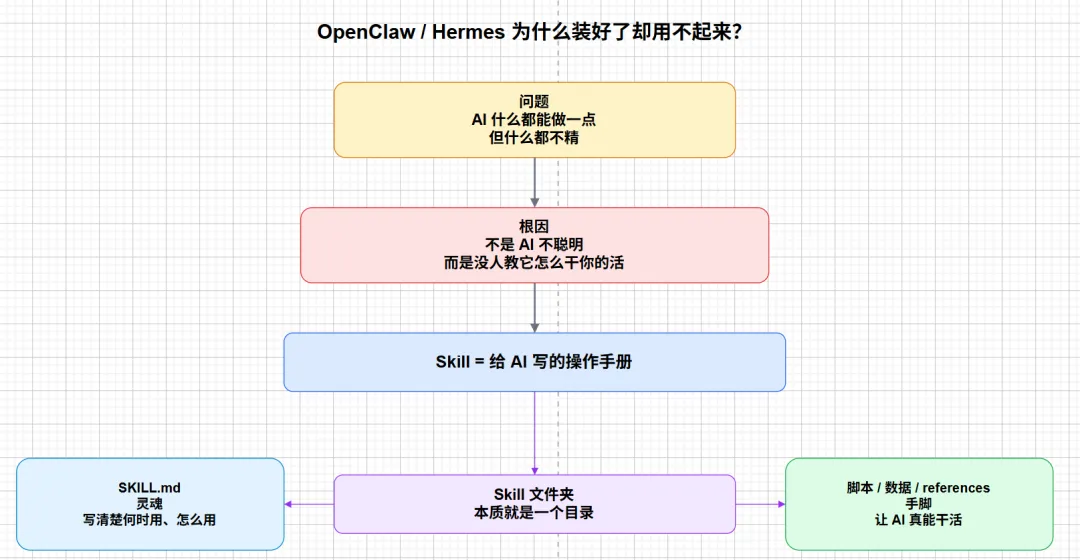 AI是个好工具,但好工具也要知道怎么去用它。Skill就是教AI干活的操作手册。不管是自己手搓的Skill,还是从Skills市场找到的,都是让OpenClaw虾族以及Hermes等马族多快好省干活的工具。