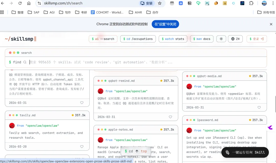 Skillsmp(https://skillsmp.com/zh)— 最大的聚合平台,已经九十多万个Skill,支持中文搜索。