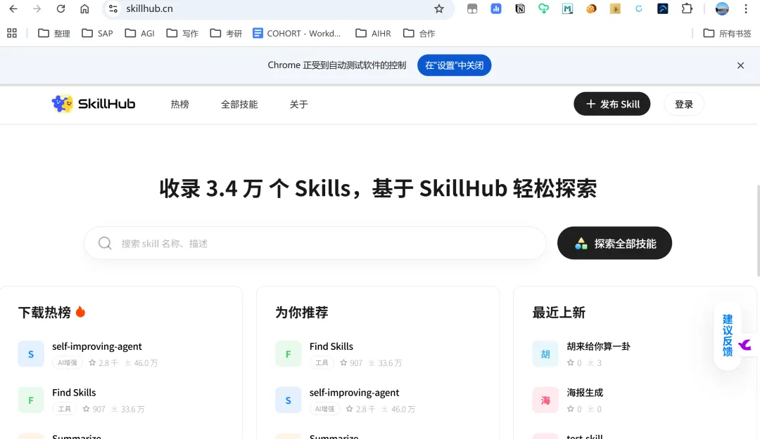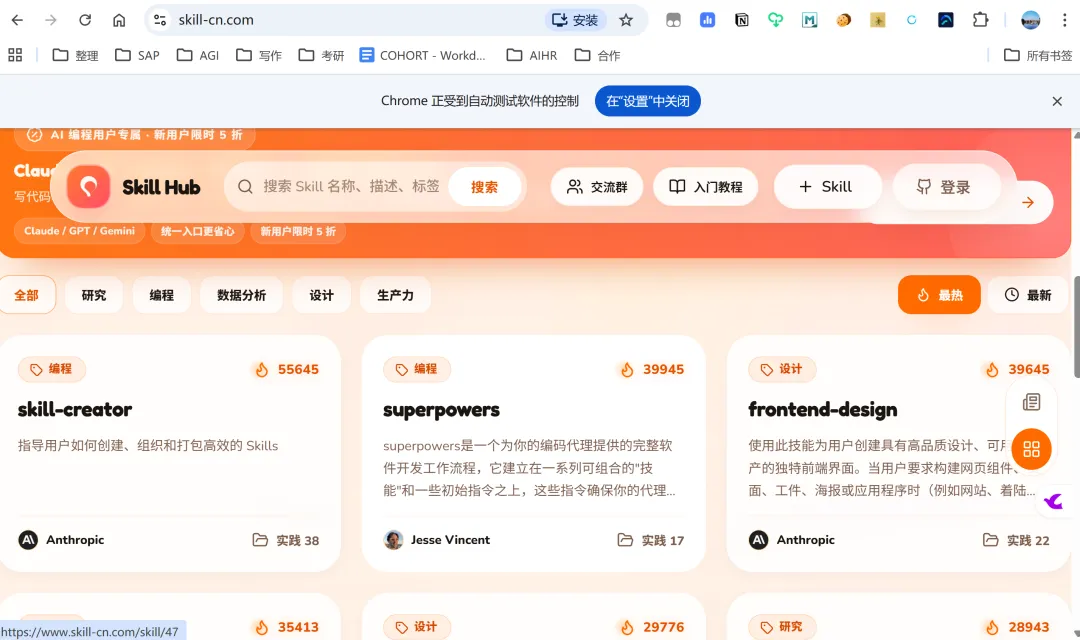 Skill Hub中国(https://www.skill-cn.com/)— 同样是国内平台,帮国内用户快速找到能用的Skill。