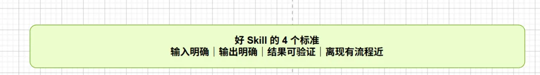 所以真正成功的Skill有四个共同点:输入明确——用户知道该给什么;输出明确——用户知道会得到什么;结果可验证——用户能判断对不对;离现有流程近——不要求学新东西。