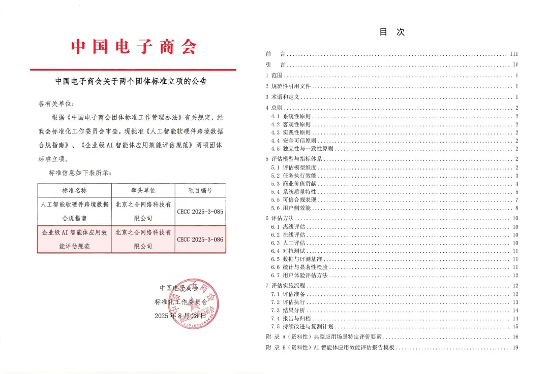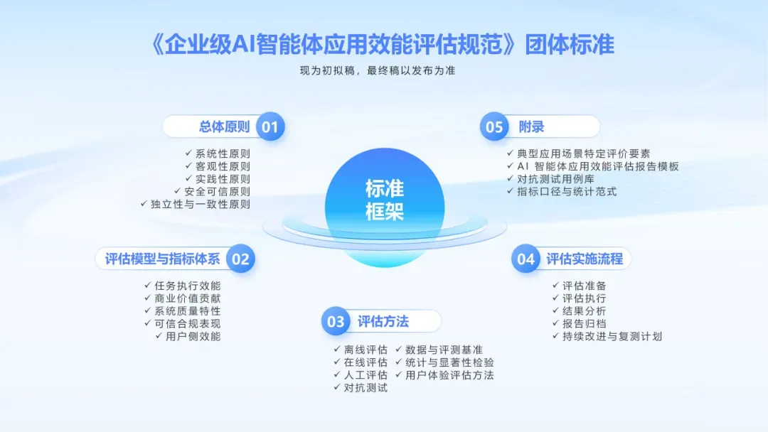 由中国电子商会归口管理、智合标准中心组织起草的全国首部聚焦AI智能体应用的团体标准——《企业级AI智能体应用效能评估规范》目前已进入全社会公开征求意见的收官阶段,仍有参与机会,现诚邀联盟会员单位参与,文末扫码即可参与!