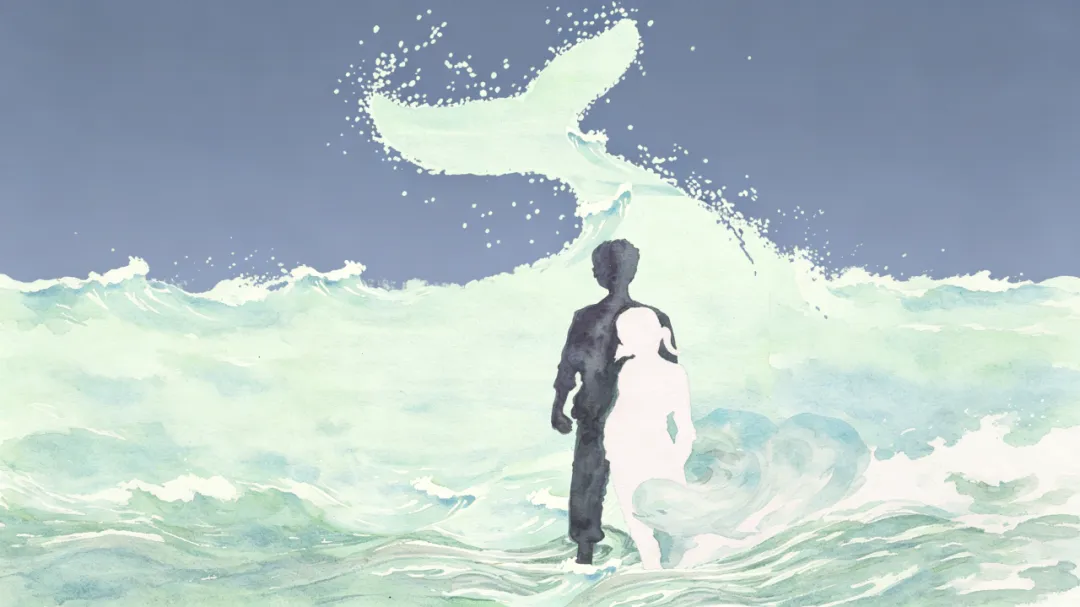 创作文稿:江江游得越来越快了, 一边游,还一边唱着歌。 然后,他看见前面出现了好大一群白鱀豚, 像一大群浮动的小岛。 阳光透过水面照射在它们的身上, 好像许多美丽的花纹在它们身上神奇地开放。