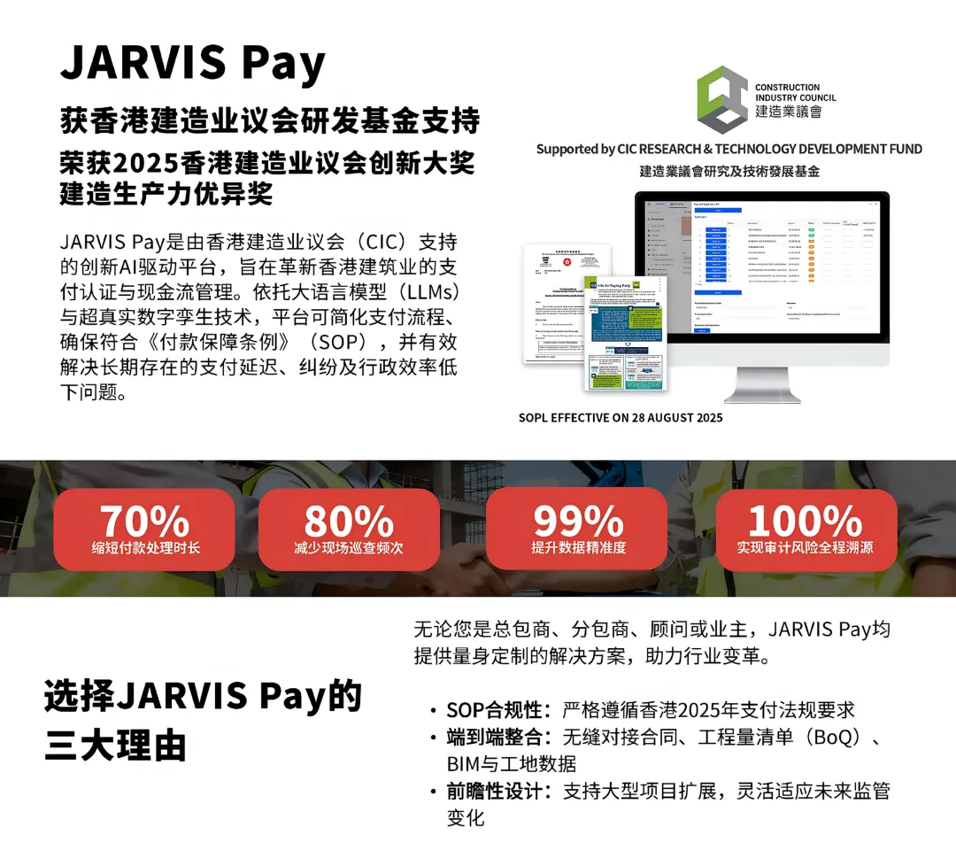 活动期间,香港互联立方总裁李刚先生受邀出席,并发表《JARVIS Pay:AI如何改变建筑付款方式与采购流程》主题分享。他结合当前建筑行业数字化转型的大趋势,深入剖析了行业内普遍存在的采购流程繁琐、付款效率低、数据不互通等痛点,详细讲解了JARVIS Pay如何借助AI技术,打通工程采购、新工程合约(NEC)、支付、风控全链条,优化采购与支付的整体流程,为建筑企业实现降本增效、数字化升级提供了可落地、具前瞻性的战略指引与实践路径。