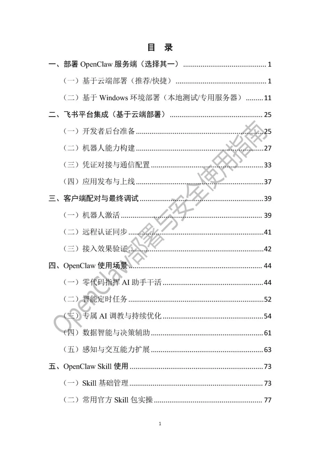 内容覆盖基于云端与Windows 环境的多模式部署、飞书平台全链路集成、客户端配对与效果验证,重点围绕安全配置、使用场景、Skill 管理及防护体系展开,既提供“手搓安全配置”的基础操作,也给出企业级防护体系搭建的进阶方案,同时收录零代码指挥、智能调教、决策辅助等实用场景,助力用户快速掌握和应用。