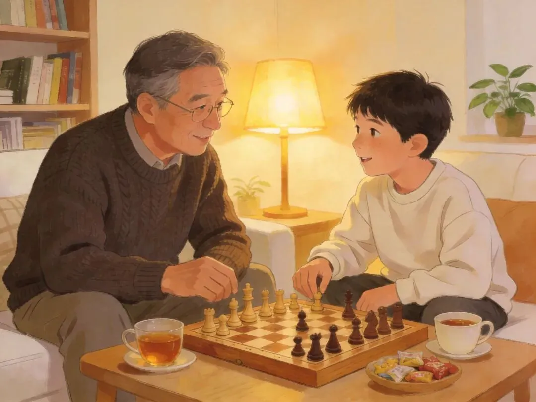 晚饭后到睡前,家里尽量不开电子设备。这段时间我们聊天、下棋、散步,或者他就自己在那儿捣鼓他的乐高。