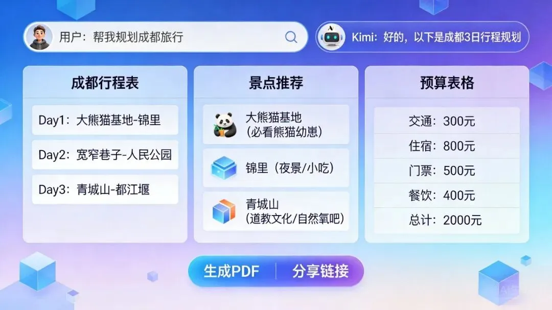 它不是要取代你的旅行,而是把你从繁琐的信息筛选中解放出来,让你把精力放在真正重要的事情上——比如陪家人,比如享受美食,比如在都江堰的山水间发一整下午呆。