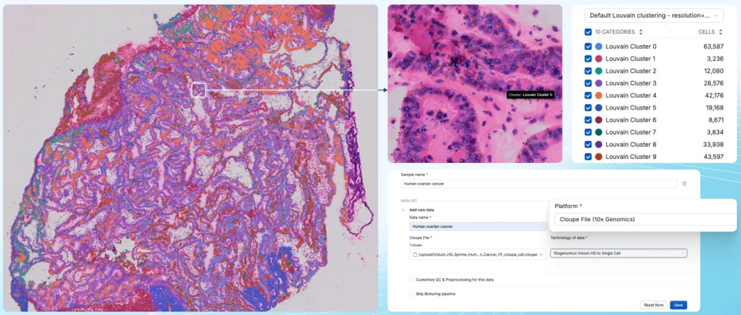 可直接从10x Genomics Loupe Browser提交您的.cloupe文件,无需格式转换。将您现有的Visium和Visium HD工作流程无缝集成到SpatialX中。