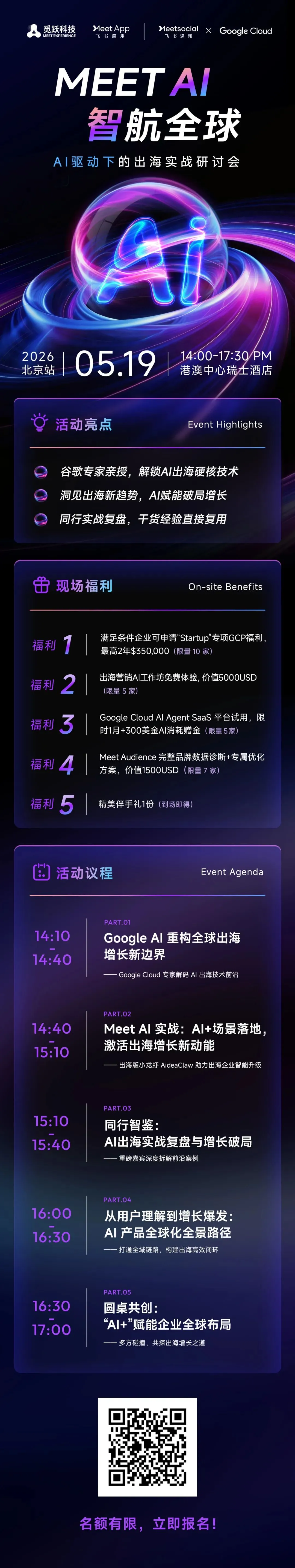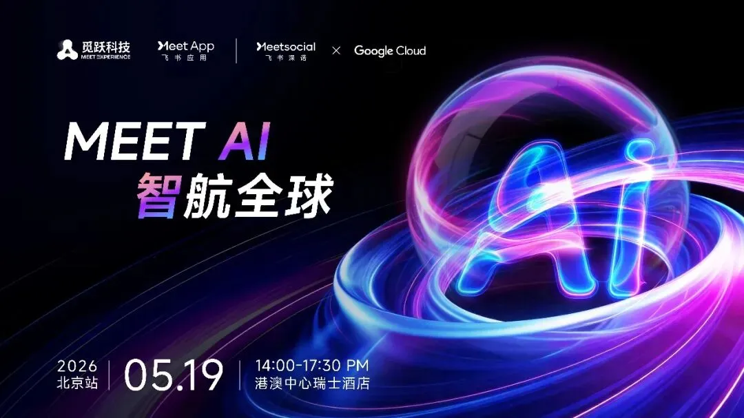 为持续助力中国企业精准把握 AI 时代出海新机遇、破解实战痛点,5 月 19 日,觅跃科技 Meet Experience 联合 Google Cloud、Meet Apps,重磅落地 Meet AI・智航全球:AI 驱动下的出海实战研讨会(北京站)。