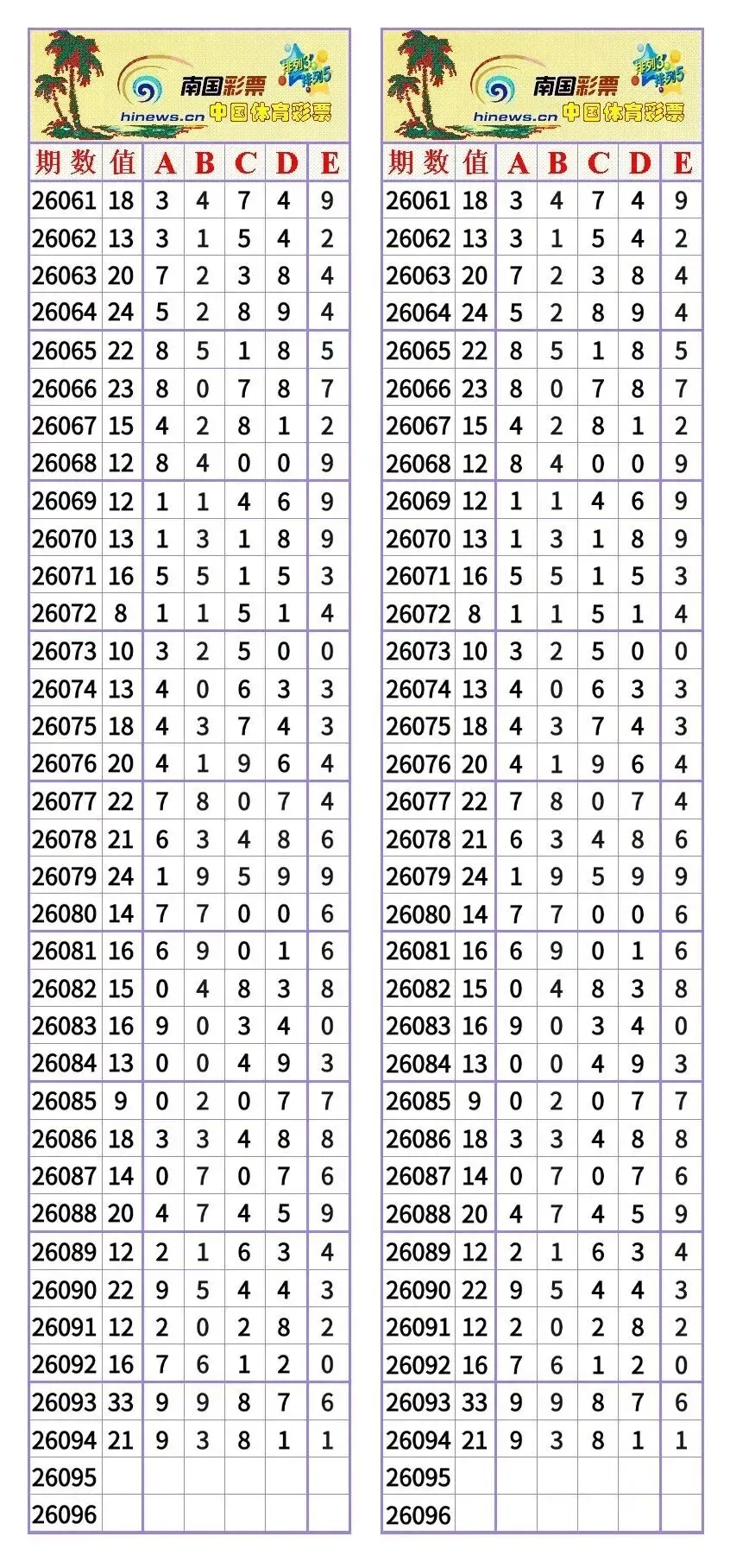 排列5第095期空模板| 上期26094期开奖号码:9381+1