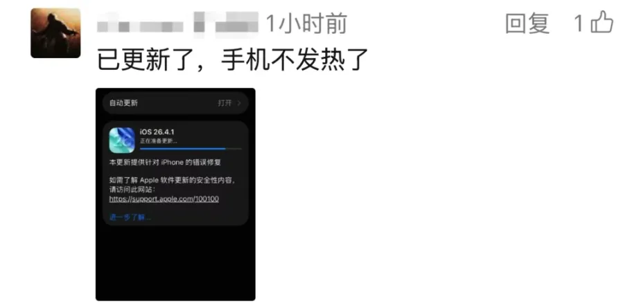普通用户关注点还是稳定性,社交平台看一圈,装了 26.4.1 的用户反馈比较集中在日常运行更稳,发热现象有缓和。