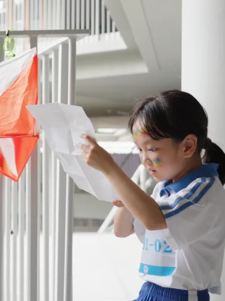 小一新生步履略显稚嫩,却勇敢手持地图穿梭校园。找不到点时会慌,但抓住老师衣角问清方位标识后,立马撒腿追上去;AI任务屏前学动作,比划歪了也不羞,咯咯笑着再来一次——这份不怕出错、勇于探索的劲头,正是地理启蒙与勇气成长的起点。