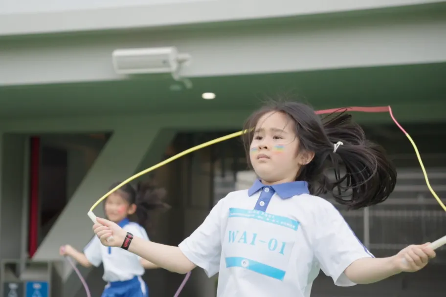 架空层的AI智能互动屏前,上演着静力与动态的较量。一分钟跳绳区,绳影翻飞,节奏稳如钟摆;这一分钟,是对毅力与节奏感的死磕。旁边的立定跳远区,则是瞬间力量的爆发。孩子们摆臂、屈膝、腾空、落地,一套动作干净利落。AI视觉传感器无声记录着每一次起跳角度与落地距离,屏幕实时反馈,数据不说谎,汗水与努力同样真实。