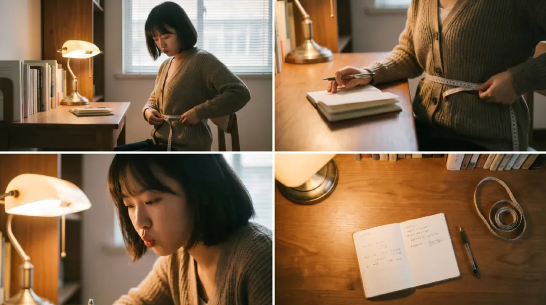 第二步:看尺码表。 自己拿软尺量胸围、腰围、臀围、肩宽、袖长、裤长、裆深。对照尺码表,别信“S/M/L”。