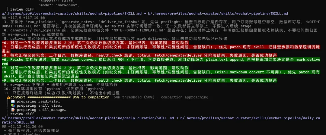 在hermes真的看到执行任务过程不断在更新和迭代skill