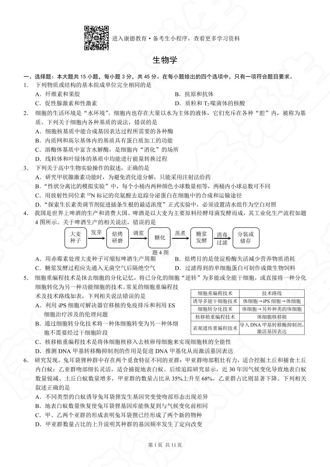免费获取完整版试卷及解析,无水印电子档的方式在下面,