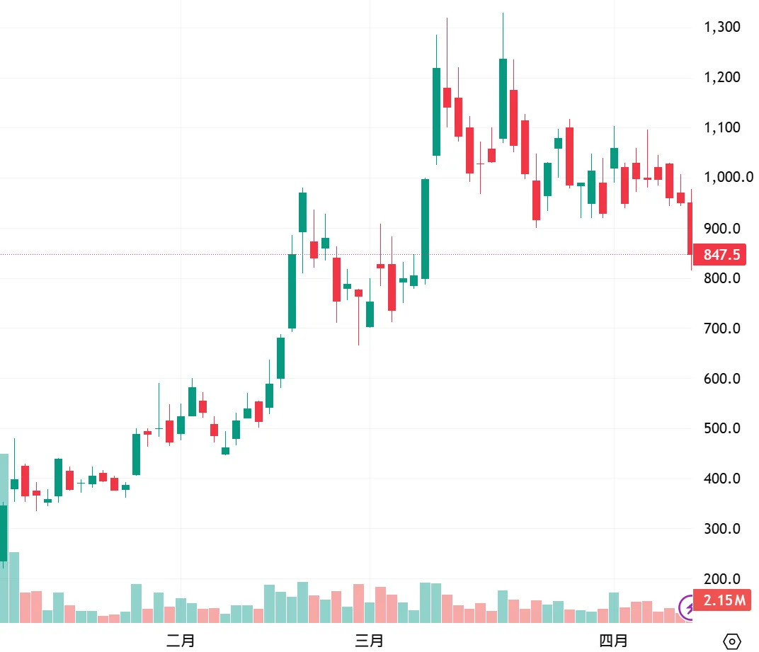 (国内模型厂商Minimax的股市走势图,在3月份龙虾爆火期间,股市一路走高)