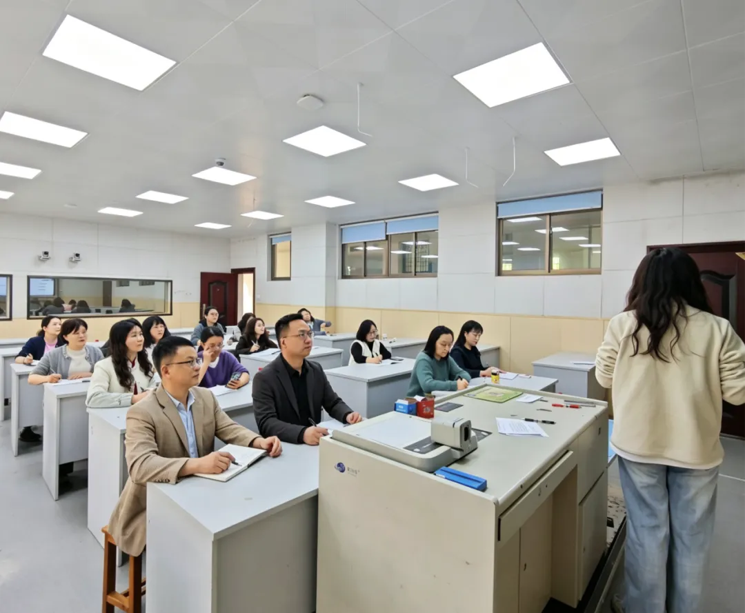 为探索人工智能与小学数学教学深度融合的有效路径,4月8日下午,大同第二小学开展了“AI赋能下,让‘分配’看得见”主题式校本研修活动。活动特邀芙蓉区教育科研中心小学数学教研员殷蓉到校指导,学校党总支书记郑荣晖、校长姚攀、副校长龚竞、教研室主任郭迎华全程参与,全体数学老师到场学习研讨。