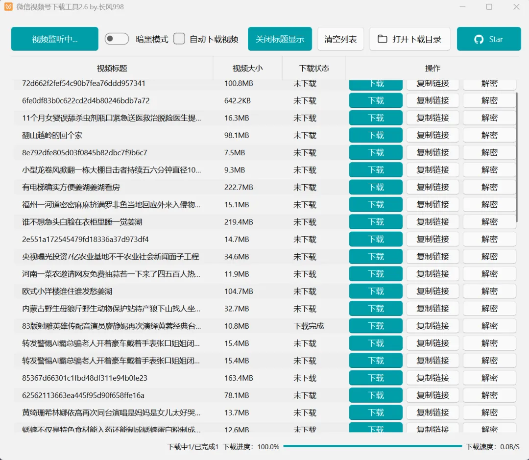 分享一款Windows端专用微信视频号下载工具,它不仅支持下载视频号视频、还支持下载直播回放以及实时直播,还能获取视频原始下载链接,软件操作简单,完全免费,可以轻松保存你喜欢的视频内容。