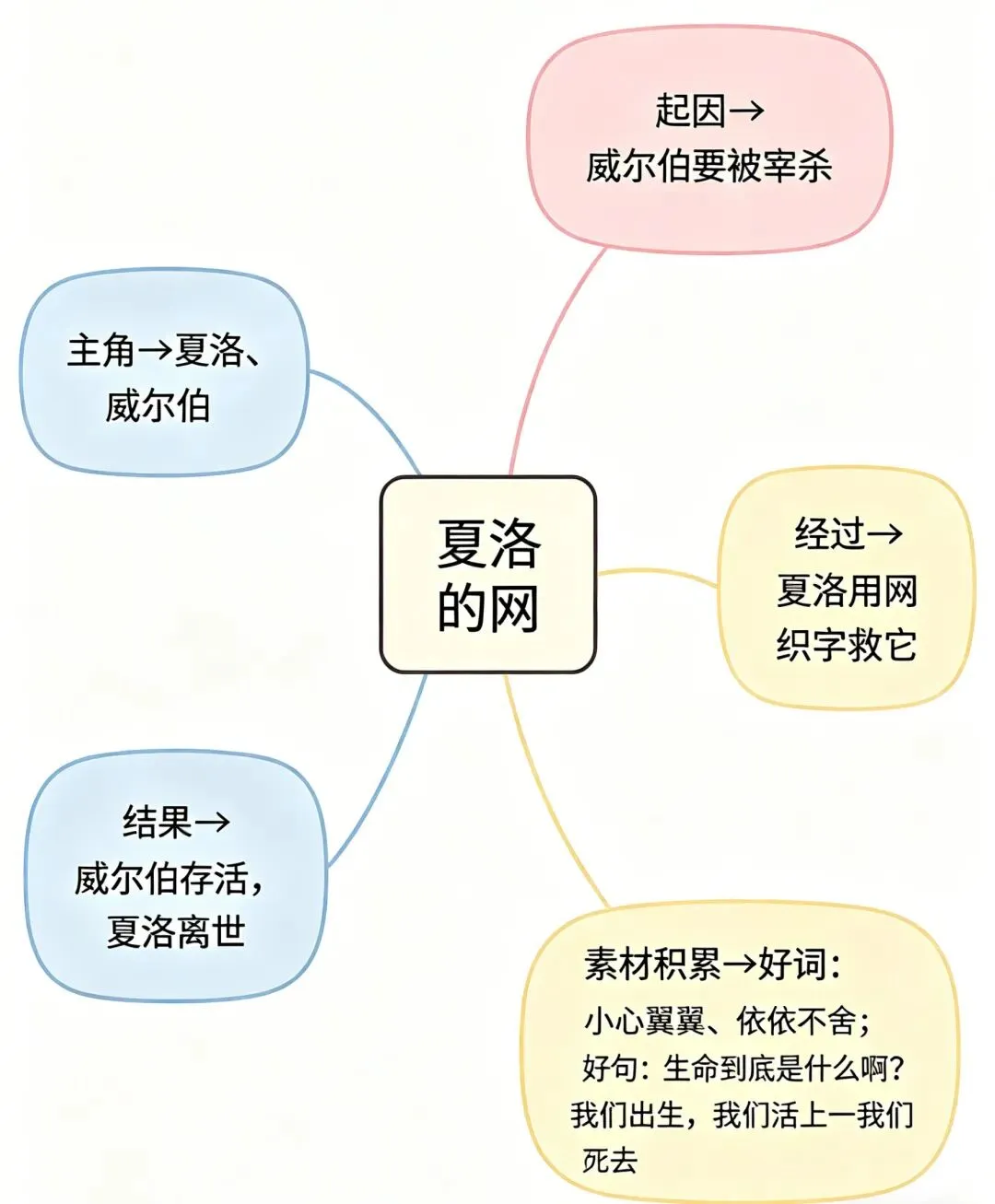 重点提醒:思维导图不用复杂绘画,核心是帮孩子培养提取关键信息、分层概括、全局思考的思维模式,用简单线条+关键词梳理思路、做好输出,让阅读打卡不止是“读”,更是思维的训练。 |