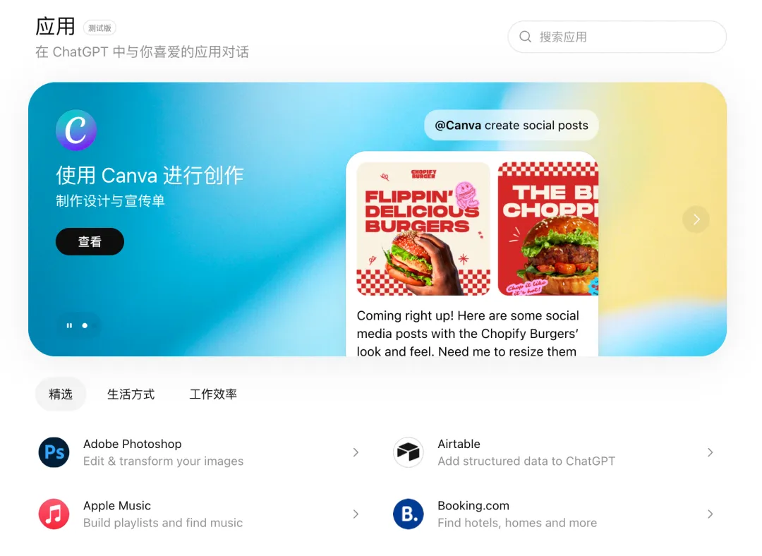 最近看到 ChatGPT 推了一个“应用”功能。