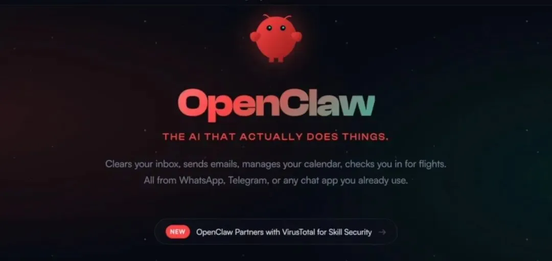 它的 Slogan 也很霸气:The AI that actually does things(真正能做事的 AI)—— 区别于只聊天、给建议的传统 AI,OpenClaw 是能直接动手干活的 AI 执行引擎。