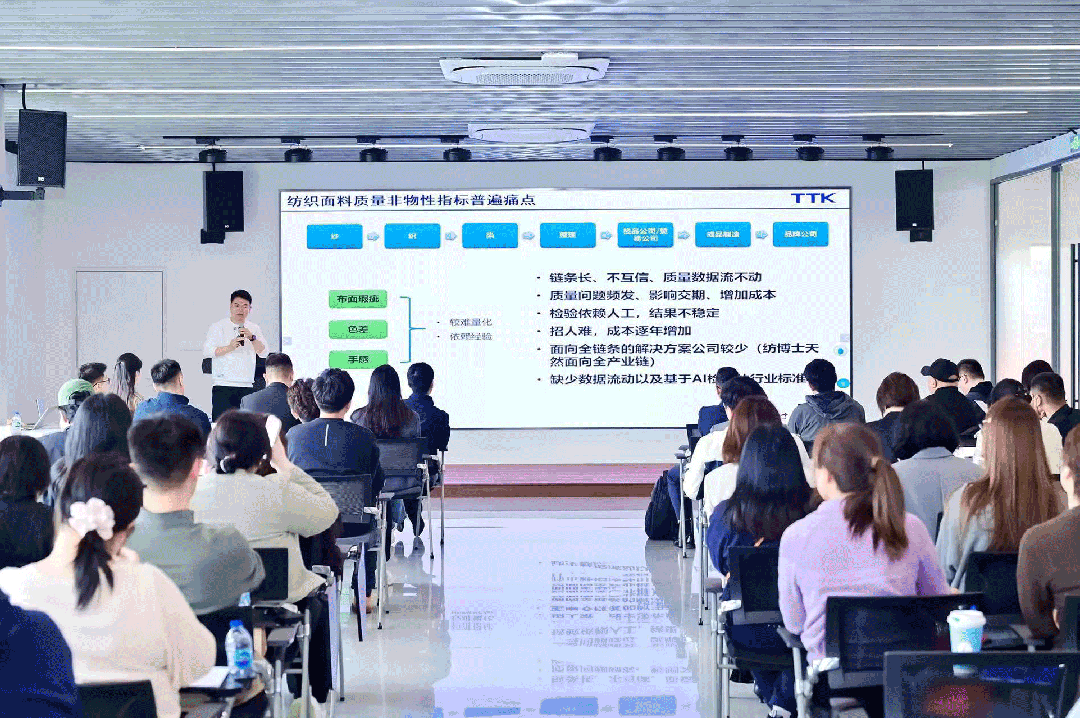 苏州涂泰克纺织科技集团有限公司AI项目负责人吴礼银、鲁特运动服饰苏州有限公司运营总监季欣、张家港牧羊人服饰有限公司市场部经理柳欣欣围绕企业研发设计、生产制造、品质检测、市场营销等关键环节,发布合作诉求。