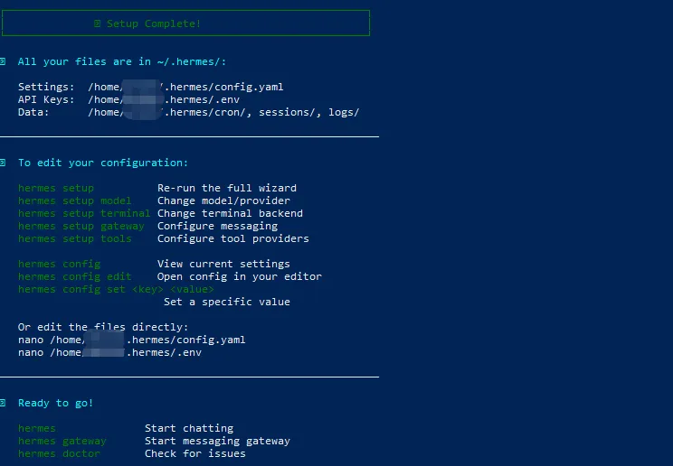 export UV_INDEX_URL="https://pypi.tuna.tsinghua.edu.cn/simple" && export NPM_CONFIG_REGISTRY="https://registry.npmmirror.com" && curl -fsSL https://ghproxy.net/https://raw.githubusercontent.com/NousResearch/hermes-agent/main/scripts/install.sh | bash注意: