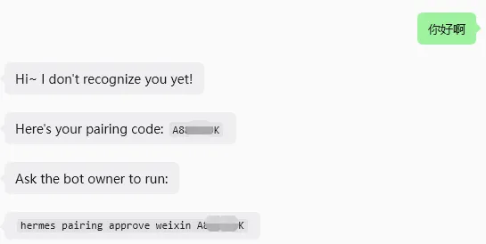 接下来,使用微信和机器人对话,会提示配对。wsl下执行配对批准命令后,即可正常对话。