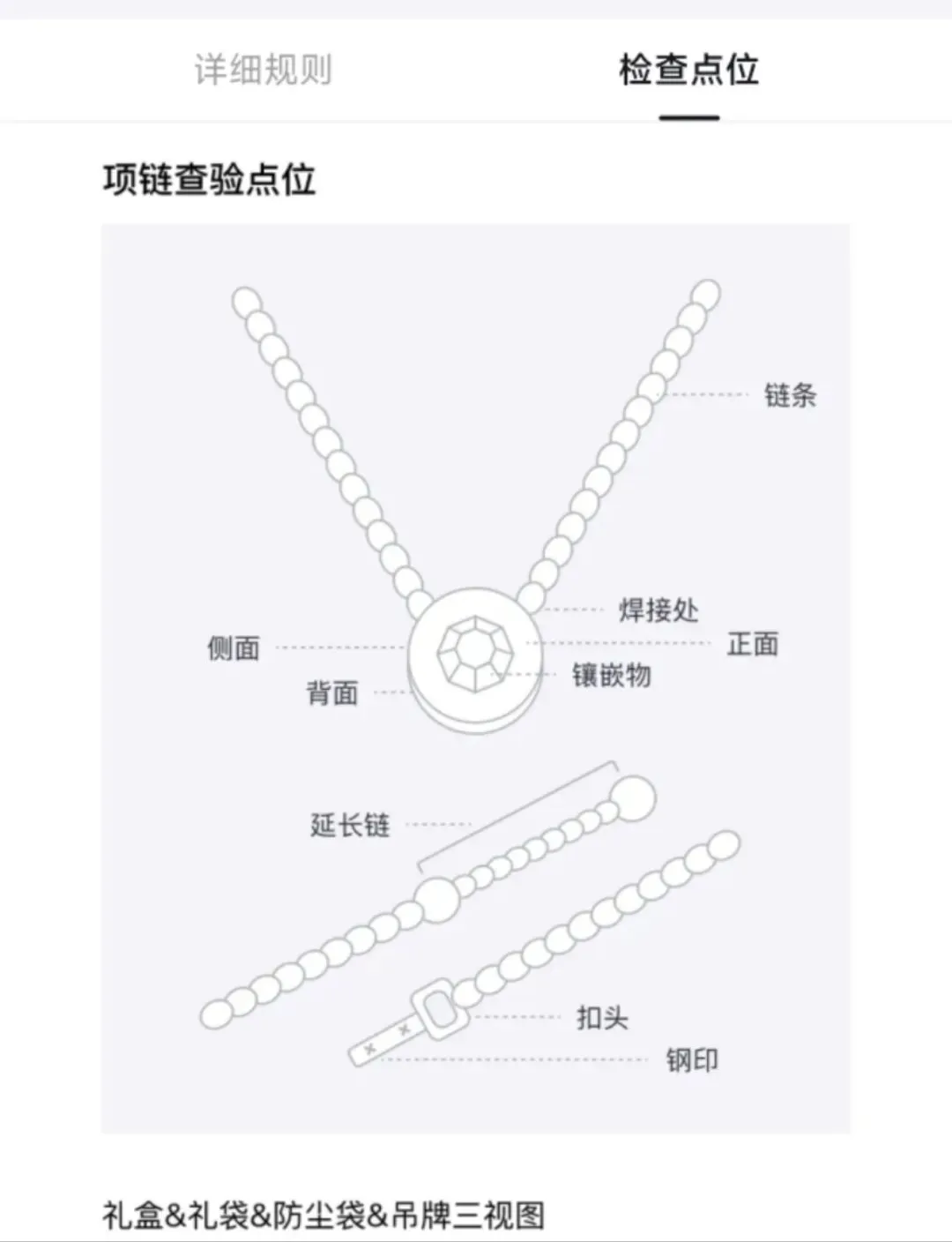 在购买时,得物App称将对项链进行查验鉴别,确保项链为全新正品后才会发货至用户手中。