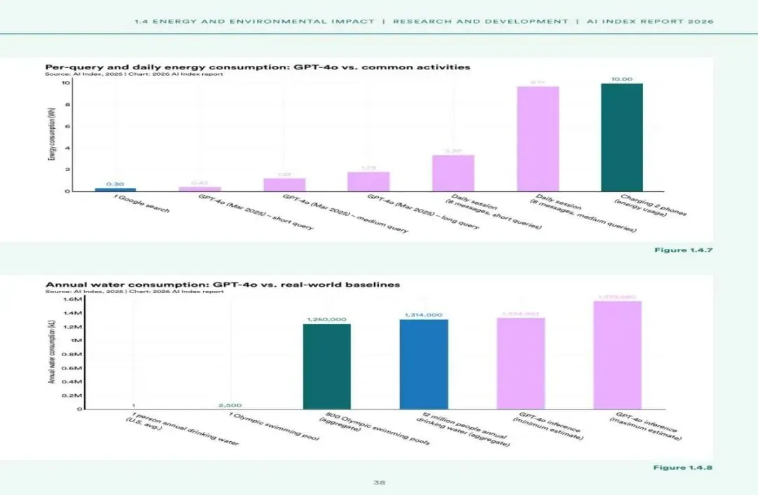 图4:GPT-4o推理的年度耗水量与现实基准对比(来源:AI Index 2026)