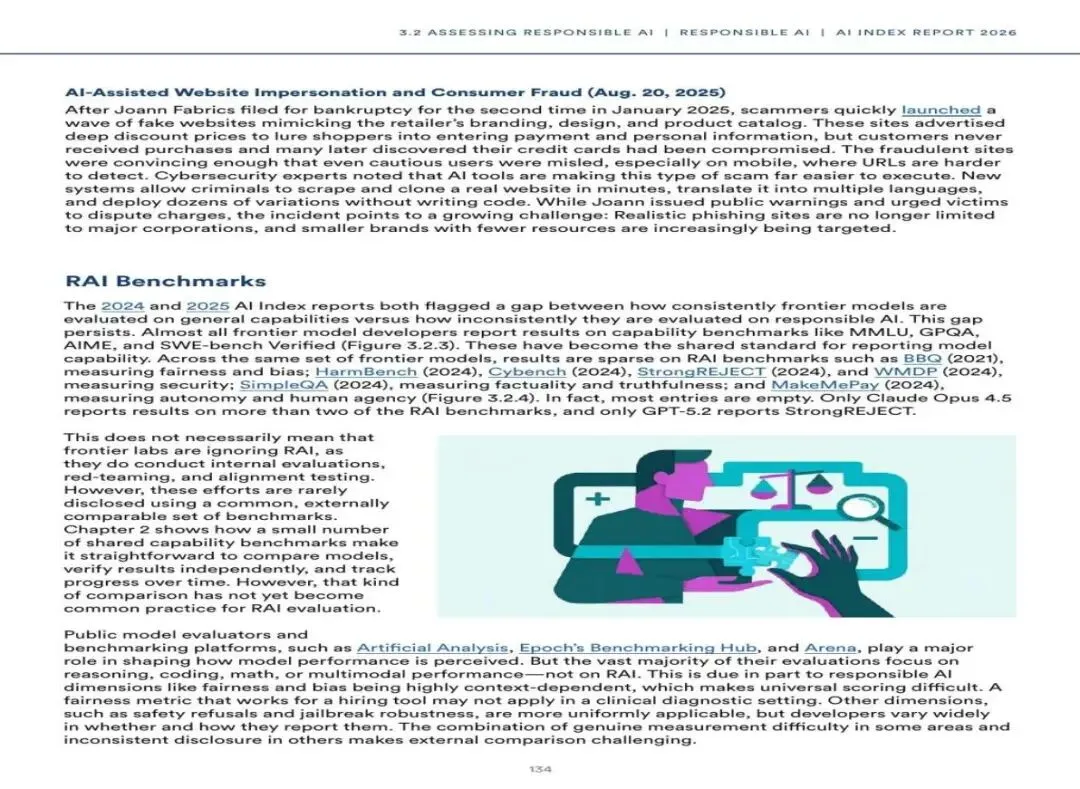 图7:RAI基准测试报告现状——能力基准与负责任AI基准的"双速"(来源:AI Index 2026)