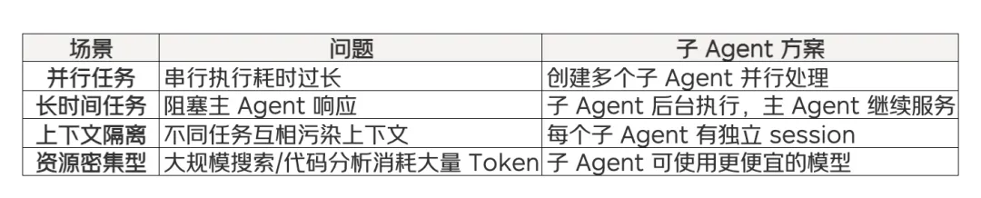 Token 成本考量:每个子 Agent 都有独立的上下文和 Token 消耗。对于重复性或密集型任务,建议为子 Agent 配置更便宜的模型,主 Agent 保留高质量模型。