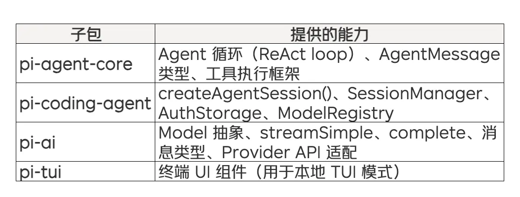 pi-mono 由多个子包组成:
