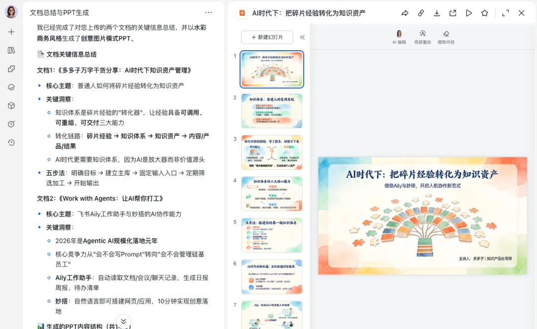 举个我自己的例子,我今天下午用10分钟让AI直接帮我把文档变成了PPT,以前我自己做PPT至少得花3小时去完成。 但是,AI的到来,一切都变了。
