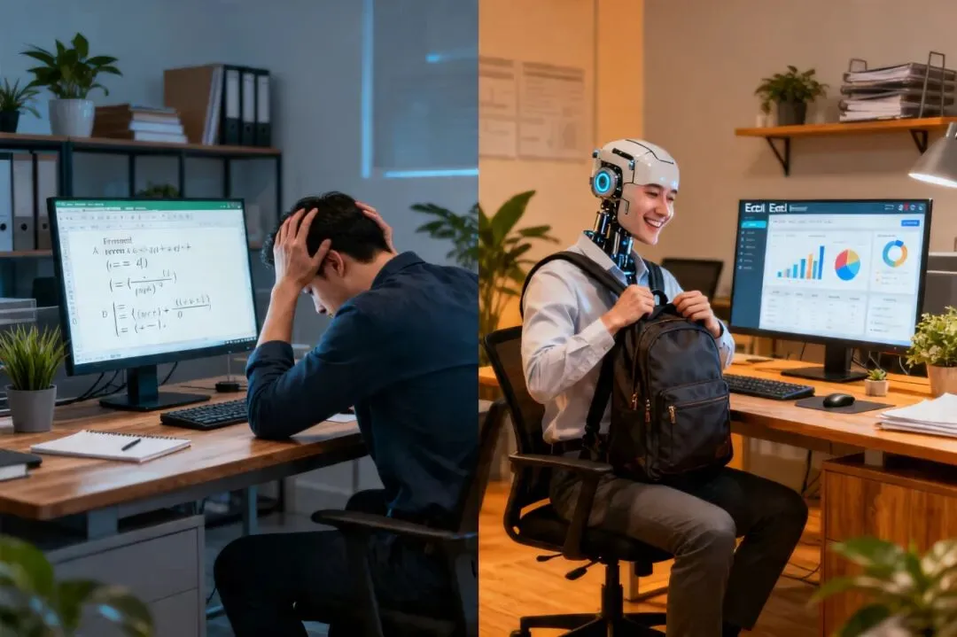 使用AI辅助Excel一段时间后,效果非常明显。从公式学习成本来看,传统做法需要记忆上百个函数,成本较高,而AI辅助做法只需用自然语言描述需求,成本较低;在复杂公式编写方面,传统做法易出错,调试平均需要30分钟,而AI生成的公式准确率在95%以上;数据分析效率也大大提高,传统做法需要2 - 3小时,而AI辅助做法只需20 - 30分钟;图表专业度上,传统做法依赖个人审美,经常被退回修改,而AI推荐最佳实践,一次就能通过;出错率也明显降低,传统做法因公式写错、逻辑错误等问题出错率高,而AI能验证逻辑,出错率低;加班频率方面,以前月底必加班,现在使用AI辅助可以准时下班。