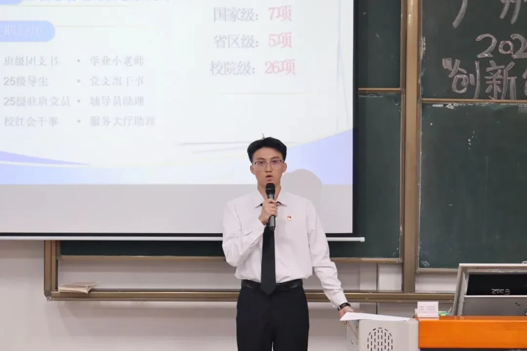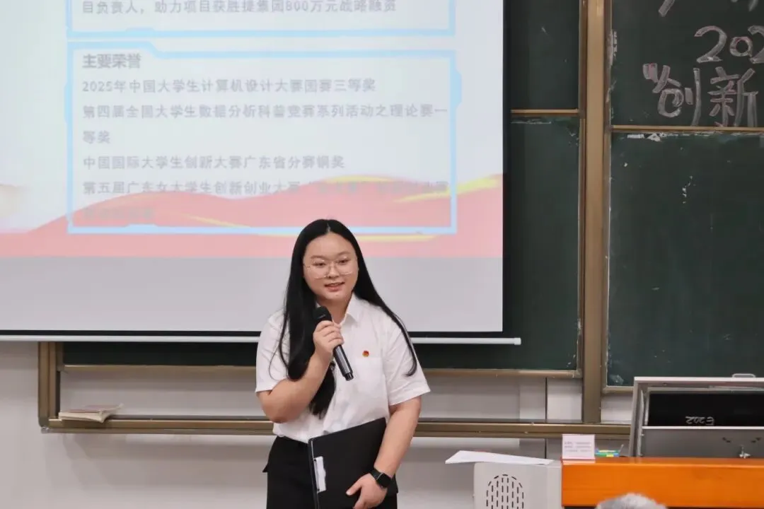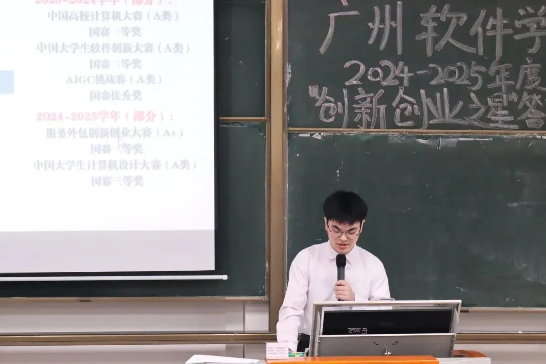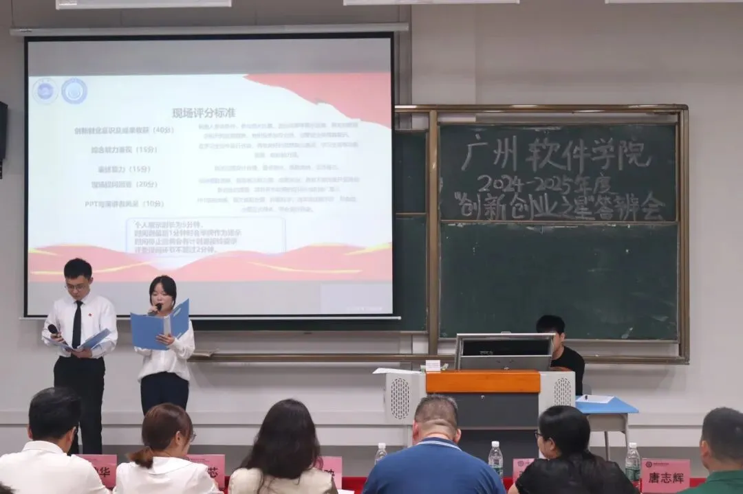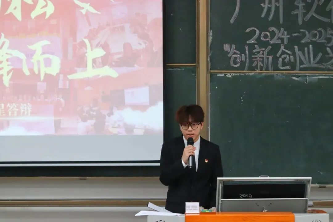 本网讯青春逢盛世,奋斗正当时。创新是时代的主旋律,更是广软学子展现风采、追逐梦想的舞台。广州软件学院2024-2025年度“创新创业之星”答辩会于4月14日13:30在广州校区D201顺利举行,一众科创青年同台竞技,尽显青春智慧与创新力量!出席本次会议的嘉宾有:产业学院院长黄炜迦、招生就业处副处长林青映、网络空间安全学院党委书记张卫香、学工办主任唐志辉、团委书记余沁芯、团委兼职副书记燕鼎华、辅导员武梓勇。
