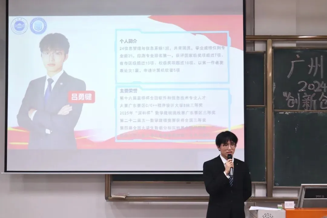 15位候选人依次答辩,分享创新创业历程、展示项目成果、交流成长感悟。评委老师结合项目实际进行现场提问,候选人思路清晰、从容应答,展现出扎实的专业素养与良好的临场应变能力。他们思维敏捷、自信从容,用创意点亮舞台,用实力诠释青年担当,充分展现了广软学子敢闯会创、追求卓越的精神风貌。答辩现场思想交融、观点碰撞,既是一次科创成果的集中展示,也是一场青年力量的生动集结。