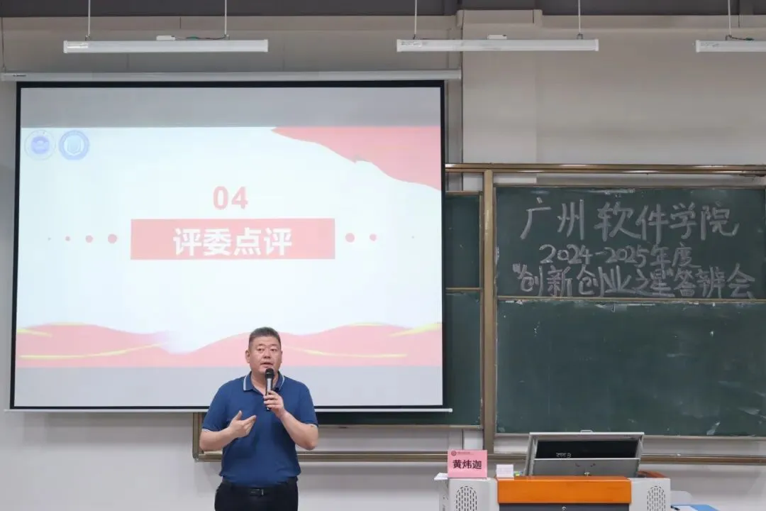 黄炜迦院长作为本次答辩会的评委老师进行现场点评。他充分肯定同学们的表现:项目紧扣国家战略,立足专业学以致用,坚持知行合一,彰显青年担当与榜样力量。同时,他建议同学们进一步深挖真实需求、构建核心壁垒、优化理性财务,加强技术积累,提升跨学科协同与团队融合能力。他指出,创新创业核心是培育创新精神与实践能力,同时,鼓励学生借助两创、产业学院等学校资源完善项目。