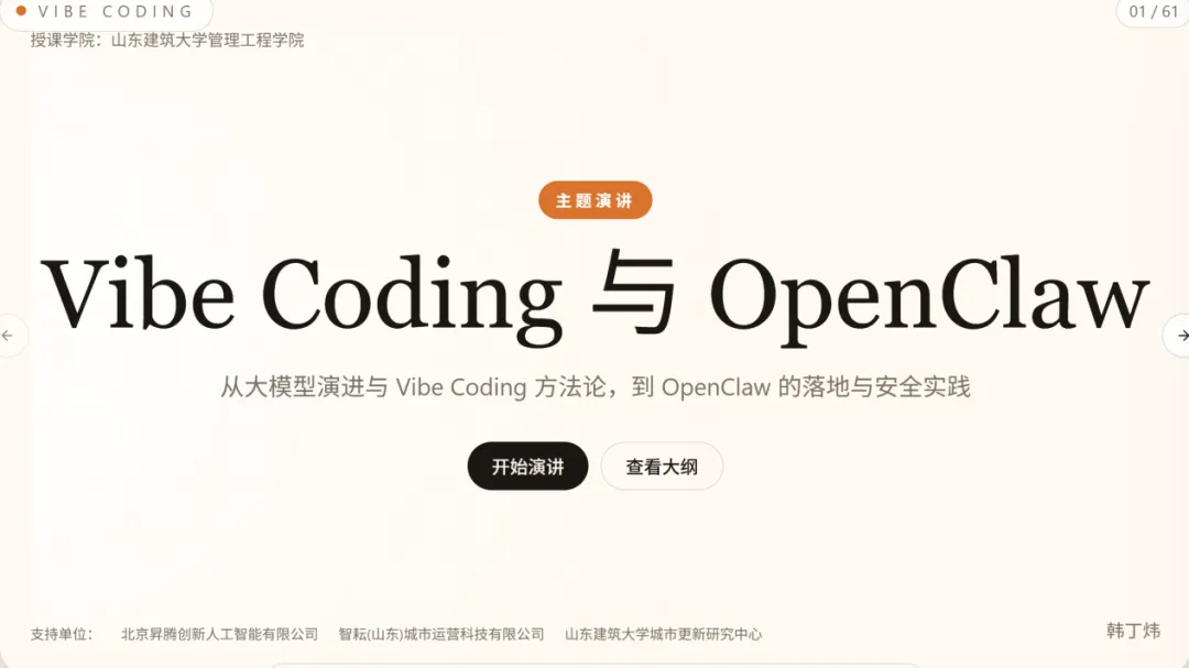 课程聚焦大模型向自主智能体演进的前沿趋势,系统梳理了AI智能体的发展脉络——从传统对话系统、工具增强大模型,到多智能体协同架构、Vibe Coding等新一代技术方向。主讲人深入讲解了OpenClaw的技术原理与任务执行逻辑,并分析了AI智能体在实际应用中的风险与防控思路。课程特别设置了实操体验环节,鼓励师生自带电脑,在真实场景中部署和运行OpenClaw智能体任务,帮助大家掌握可落地的AI自动化能力。