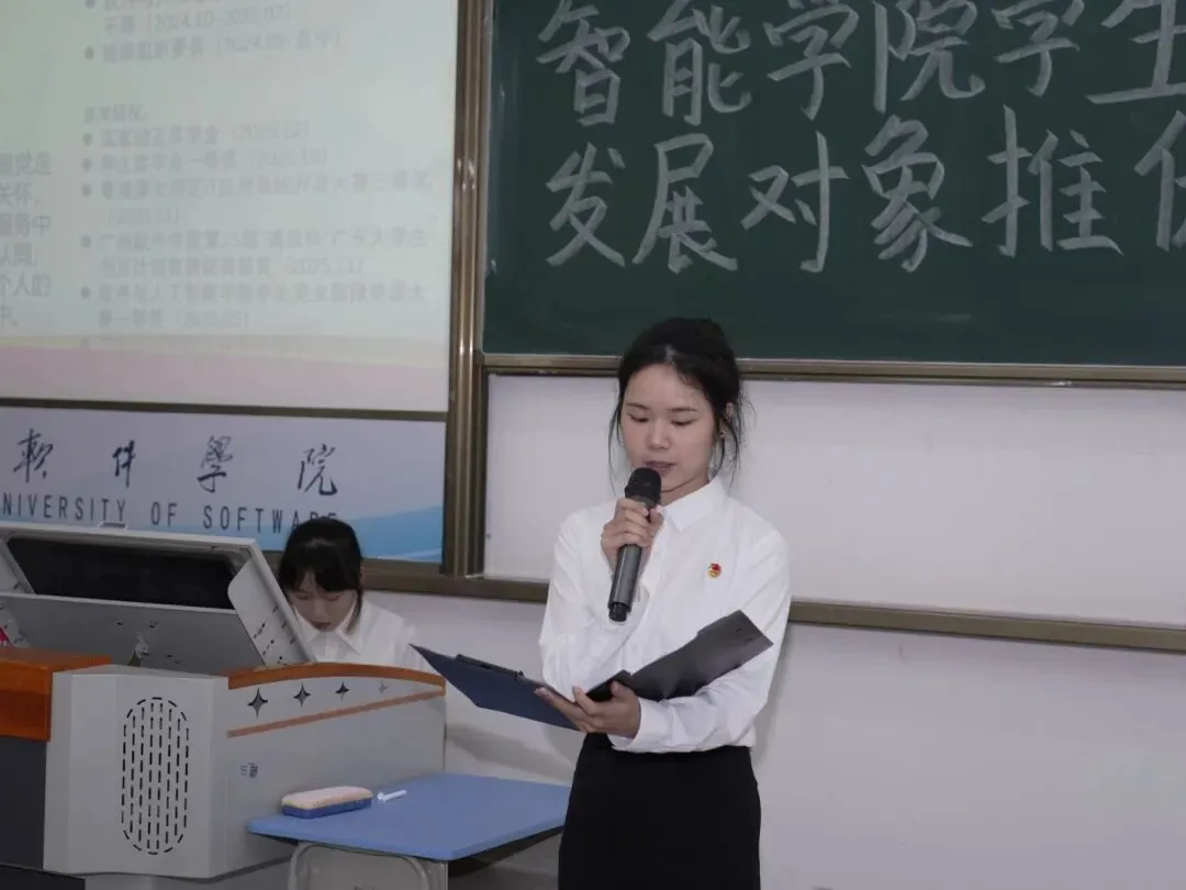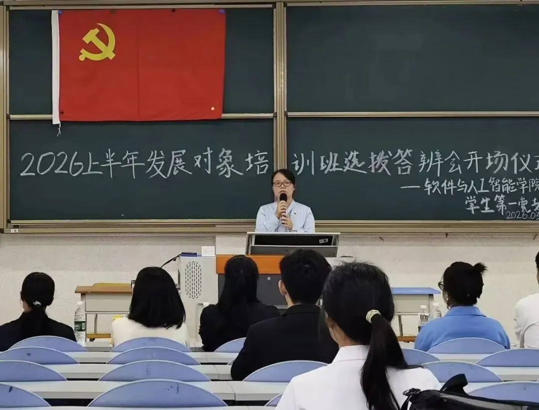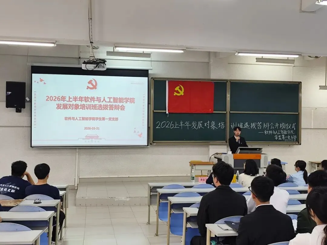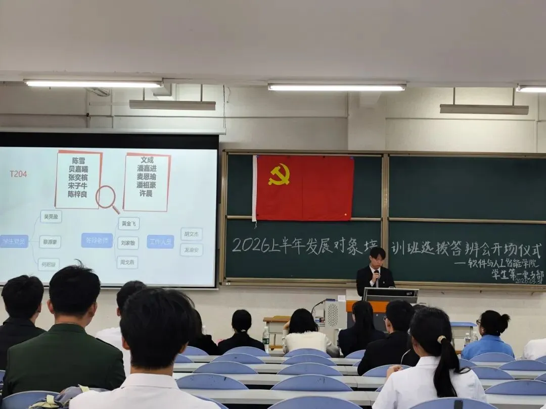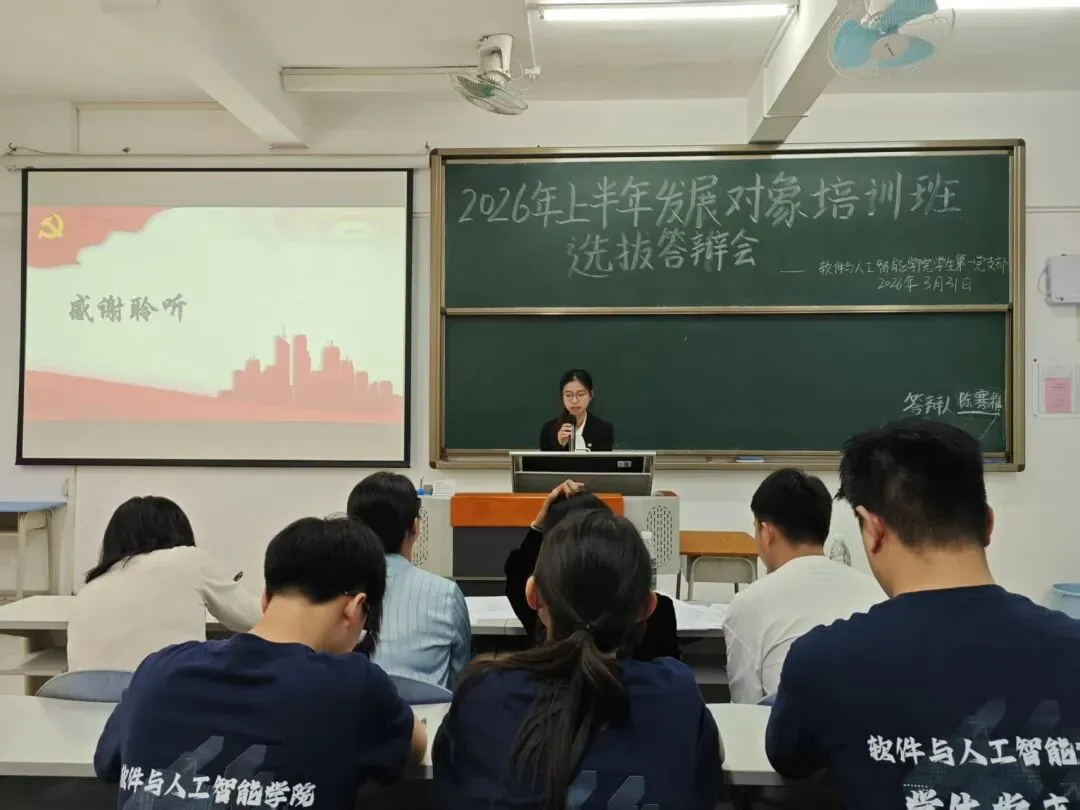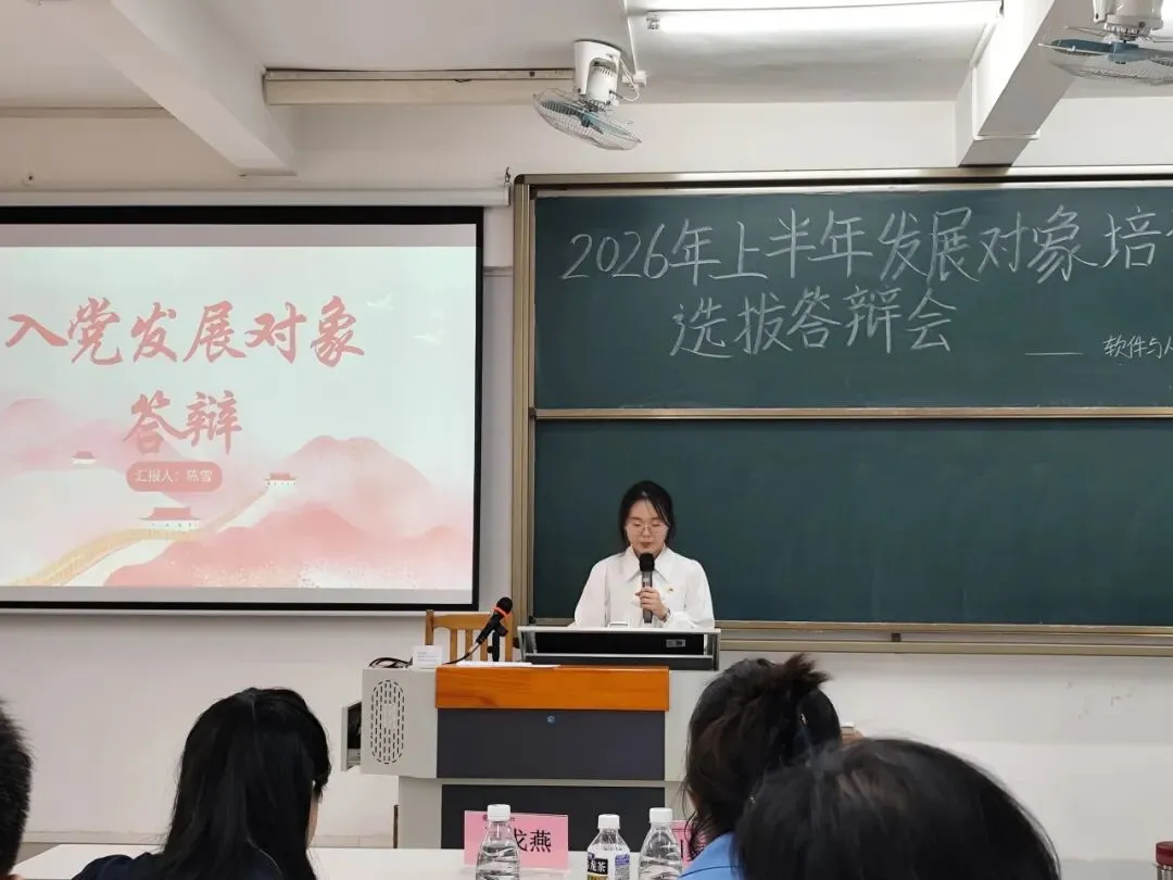 本网讯 为严格规范党员发展流程,不断提升党员队伍整体素养,为党组织注入新鲜活力与强劲动力,软件与人工智能学院学生党支部于2026年3月31日下午,在T204、T205教室成功举行第九期发展对象培训班选拔答辩大会。软件与人工智能学院学生第一党支部书记陈玉菲老师、学生第二党支部书记谭斯韵老师与相关辅导员老师,学生第一、二支部全体学生党员,以及47名发展对象参加本次会议。